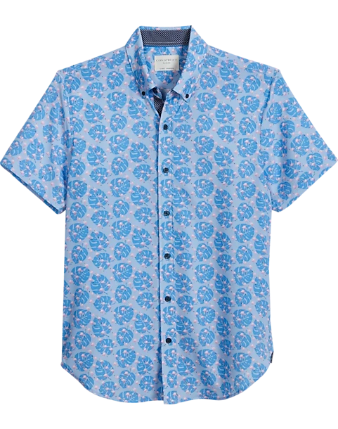 Keep your cool in the heat with this short-sleeve sport shirt from Con.Struct. Made with a breathable poly blend, button-down collar, and sleek Slim Fit, you can pair it with shorts, jeans, khakis, and other laid-back slacks for dressed-down perfection.