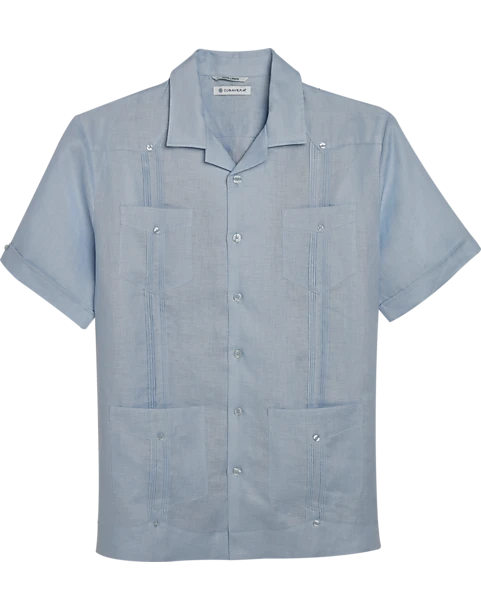 Be the first to review “Cubavera Modern Fit Short Sleeve Linen Guayabera Shirt, Light Blue” Cancel reply