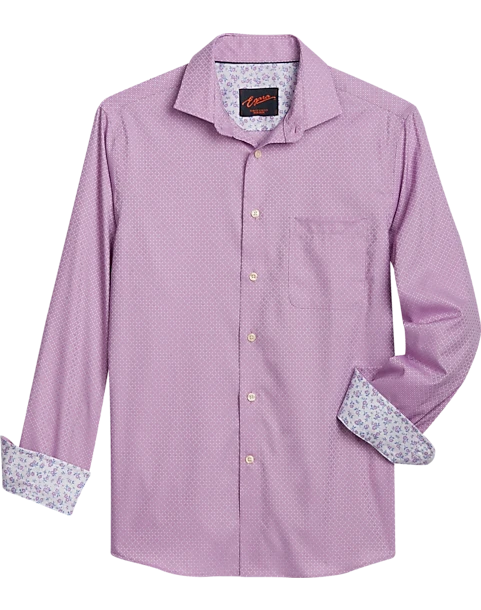 Show off your impeccable sense of style with this sport shirt from Egara. Rendered in an inspired berry hue, it features contrasting cuffs in a petite geometric print.