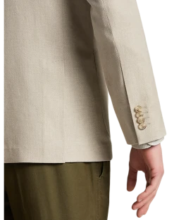 - 79% polyester 18% viscose 3% spandex|Peak lapel|Double-breasted|Two-button closure|Side vents|3/8 lined|Slim Fit|JOE Joseph Abboud|