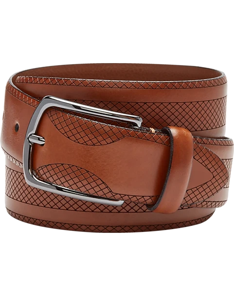 Adorned with a fine check design over genuine leather, this Italian-made belt from Joseph Abboud has feather edging and a polished, silver-tone buckle to enhance your look.