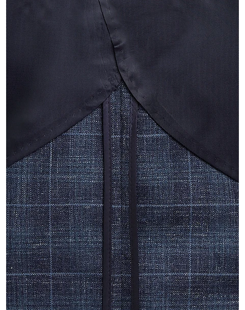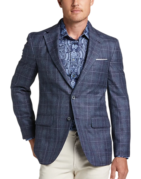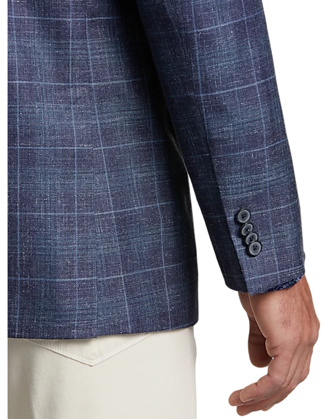 This versatile sports coat features a rich blue plaid pattern in a fine wool, silk and linen blend.