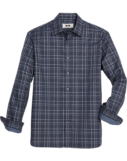 Featuring a classic navy hue and plaid pattern, this soft cotton sport shirt is a winning choice. It features a crisp spread collar and contrast lining in the cuffs.