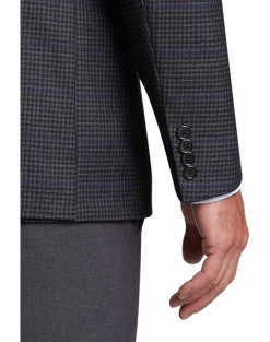 Look your best in comfort with this fine Lauren By Ralph Lauren Suit featuring a dark gray plaid pattern and fabric woven with a touch of stretch.