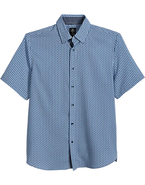 Look your best with this short sleeve sport shirt by Michael Strahan. Featuring a cool and comfortable poly blend fabric with 4-way stretch, this eye-catching shirt is styled with a spread collar and trim, Modern Fit.