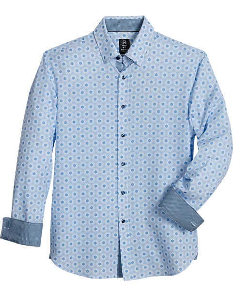 A hexagon print and contrasting cuffs bring a fashionable look to this sport shirt from Michael Strahan. And the fabric is tailored with four-way stretch to keep you comfortably on the move.