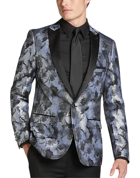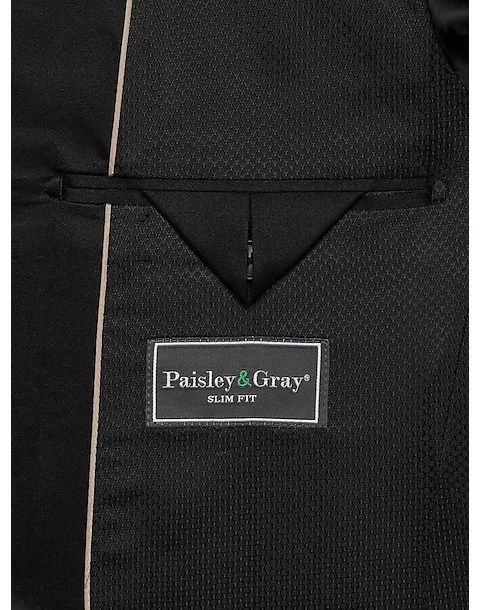 Turn heads in this fashionable find from Paisley & Gray. Styled with a peak lapel and a modern, Slim Fit, this jacket is perfect for holiday parties and formal occasions.