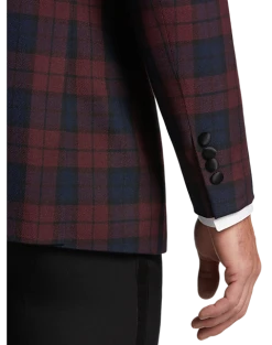 After Hours Slim Fit Satin Peak Lapel Dinner Jacket, Red Tartan Plaid